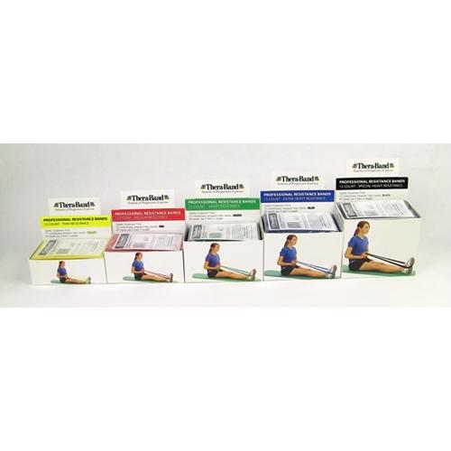 Red/Medium * 15 individual bands per pack * Each band is 5'L x 5.5 W * Each band contains a Basic Exercise Guide with 17 basic exercises and illustrations for the foot ankle hip neck shoulder and back * Safety and care information with each band including latex warning to meet FDA requirements * Thera-Band Professional Resistance Bands contain natural rubber latex * Packaged for resale allowing for easy identification UPC scanning and reordering
